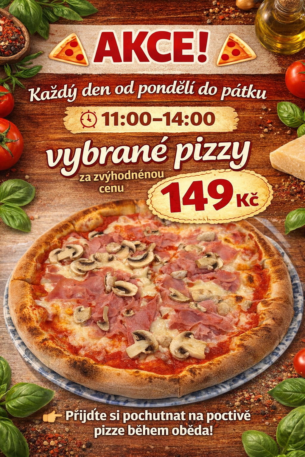 Můžete si u nás pochutnat na výborné pizze, šťavnatých steacích, domácích těstovinách i čerstvých salátech.